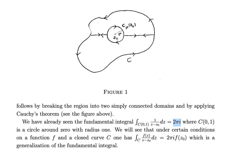 Hej! Jag försöker förstå beviset som finns till cauchys integralformel. Men har fastnat hur de har fått fram 2pi*i...Hur har de räknat det?