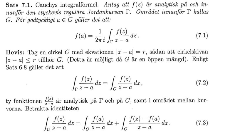 Det som jag undrar är att hur de vet funktionen f(z)/z-a är analytisk på kurvan, cirkeln och området mellan kurvorna. Var står det eller hur har de fått det?