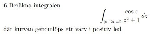 Som sagt är jag rätt så lost med denna. Vad menas med att "kurvan genomlöps ett varv i positivt led"? Har jag gjort rätt med uppdelningen av bråket? Skulle stort uppskatta om någon kunde lösa uppgiften och förklara... Tack!