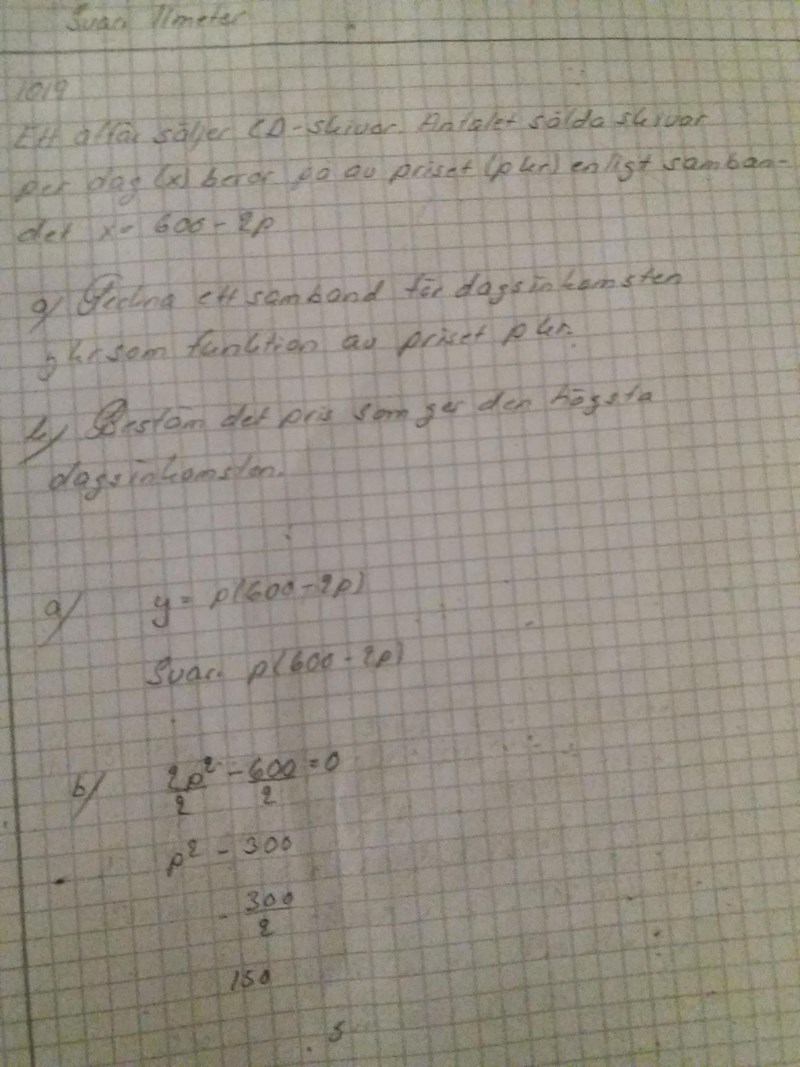 Så långt har jag inte kommit med derivata att jag kan ens om deriverings regler ännu. Jag har sysslat med tangentens lutning och sekantens lutning och har sysslat med numerisk derivering. Detta är allt vad jag kan om derivata hittills. Kvadratkomplettering är jag dålig på, men pq formeln kan jag.