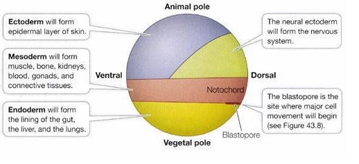 1) Denna "fate map" för cellerna - är detta uppnått just när cellerna vid 32-cell stadiet delar sig till trophoblast och blastocyst (däggdjur)/blastula (andra djurgrupper) med vätskefyllda bastocoel hålrummet?