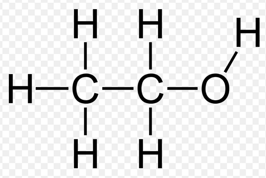 Strukturformel Etanol (Delar med CH är opolära medan OH gruppen gör den delen polär)