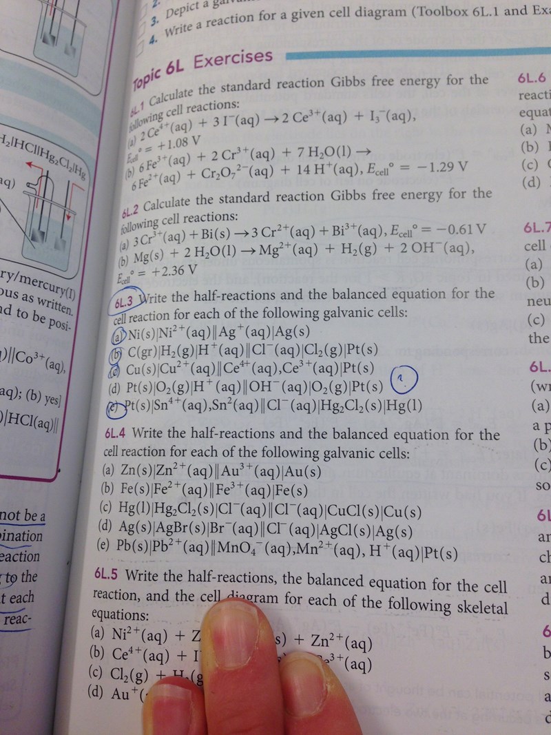 Ah - men hur skulle jag veta att vattnet här är del i reaktionen - i de andra är ämnen också i (aq) men H2O står ingenstans i halvcellsreaktionerna eller totalreaktionen?