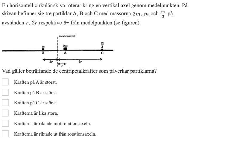 Never mind. Jag ser nu att jag inte har tagit hänsyn till radien i nämnaren, det ska förstår svara (r, 2r samt 6r), då blir samtliga krafter lika stora och fysiken har inte gått sönder :)