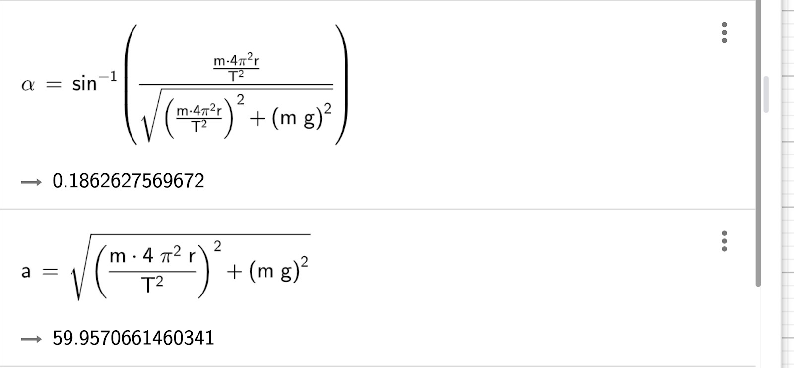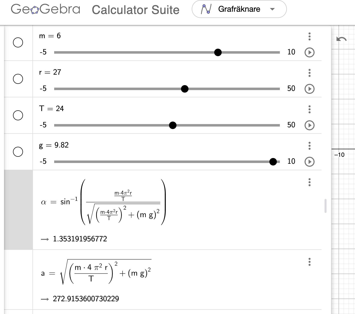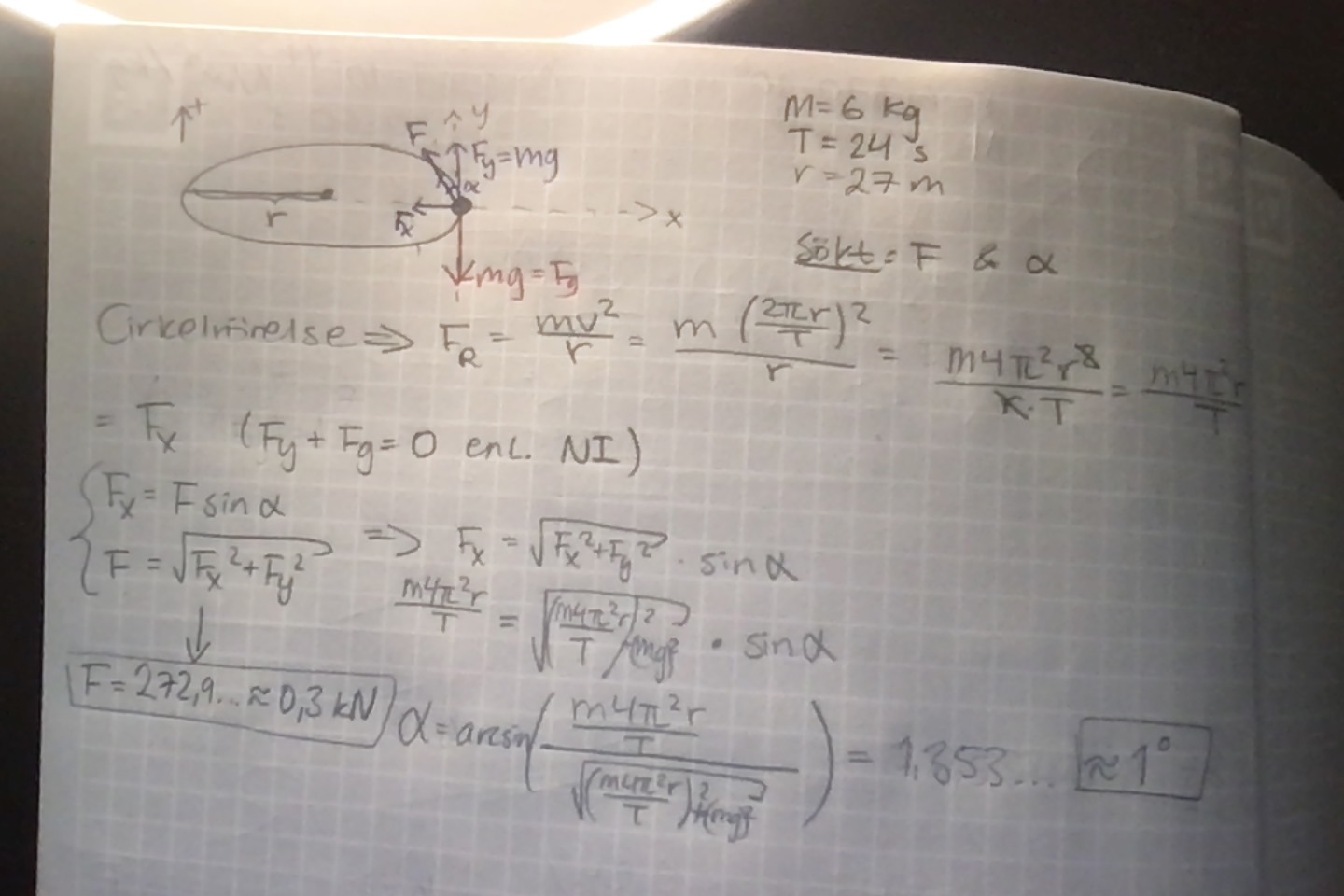 Ändrade till T^2 och har fått rätt F, men vinkeln är fortfarande fel. Vår lärare har inte nämnt något om vinklarna som du beskrev, kan det vara något annat?