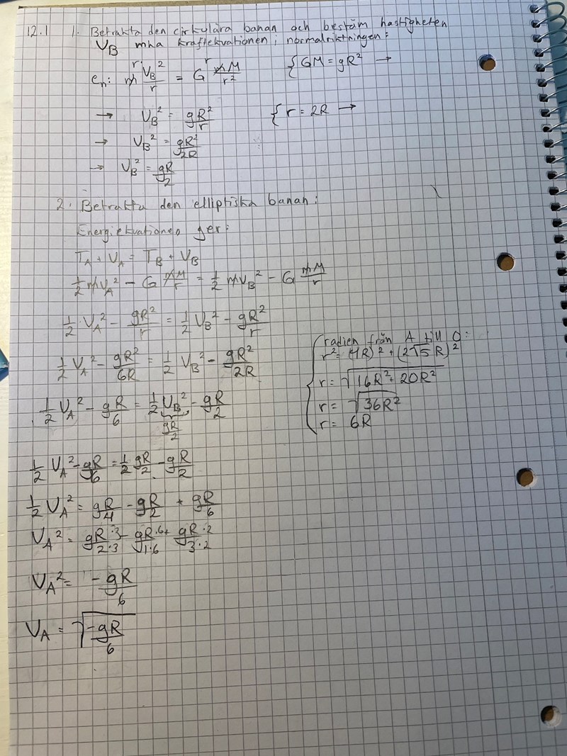 Vad menar du? I min lösning har jag först beräknat hastigheten VB, och sedan satt in den hastigheten i energiekvationen för att få ut VA.