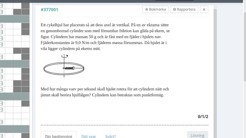 Jag vill lösa uppgiften, men vet inte vart jag ska börja. Därför kollade jag deras lösningsförslag, men de använder något som kallas för Hookes lag, vilket vi har inte lärt oss. Finns det något sätt att lösa den utan Hookes lag?