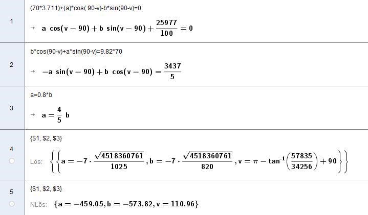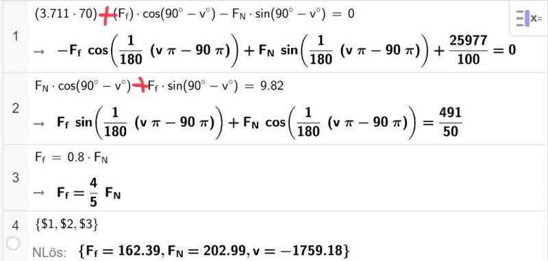 Teraeagle skrev:Skumt! Jag har aldrig använt Geogebra själv, så jag kan inte riktigt svara på varför det blir så. Det kan bero på att det finns flera olika vinklar som ger rätt svar (man kan t.ex. lägga på 360 grader och komma tillbaka till samma vinkel), men vi vet ju att den rätta vinkeln är den som ligger mellan 0 och 90 grader och där krafterna är positiva.