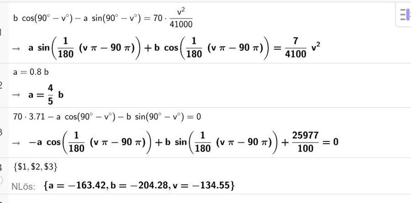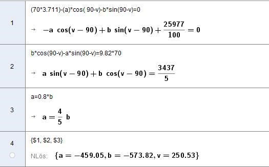 Men är det inte 4 okända variabler? v för vinken, v för hastigheten, och ?