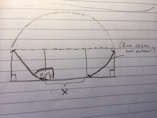 - Hur tar man sig ut och in ur kupolen om den roterar? Har du räknat ut ungefär hur snabbt kupolen behöver rotera för att man ska utsättas för en centrifugalkraft som motsvarar jordens tyngdkraft?