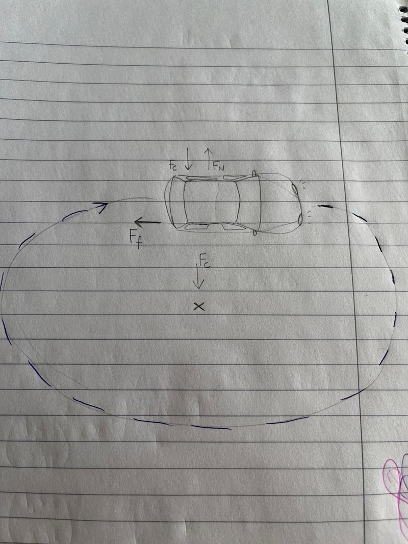 Nja, inte riktigt. Formlerna är korrekta dock har du använt dem lite konstigt. Varför satte du att gravitationskraften = centripetalkraften? Gravitationen verkar vertikalt medan centripetalkraften är en horisontell kraft. Sedan har du inte använt "Ff= friktionskoefficienten * Fn". Vilka krafter motverkar F och Fc? Eftersom bilen nu håller sig på vägen, vad kan vi dra för slutsatser om förhållandet mellan kraft och motverkande kraft?