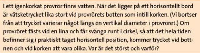 förutsatt att linan fästs vid korken så kommer trycket vara störst på bottnen. det beror på att centripetal kraftens reaktions kraft, centrifugalkraften, drar med sig vattnet åt motsatt riktning till centripetalkraften. stämmer det?