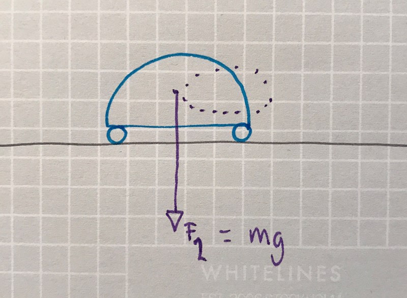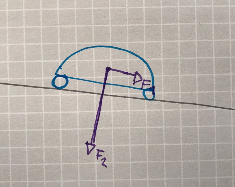 Jag menade något likadant, fast fel, med bara en normal kraft från bilen (trots att jag vet att den har 4 hjul), och friktion blandade jag med F1 i min föreställning. Det är farligt.