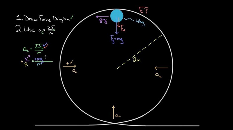 Ni kan se videon här https://www.khanacademy.org/science/physics/centripetal-force-and-gravitation/centripetal-forces/v/bowling-ball-in-vertical-loop