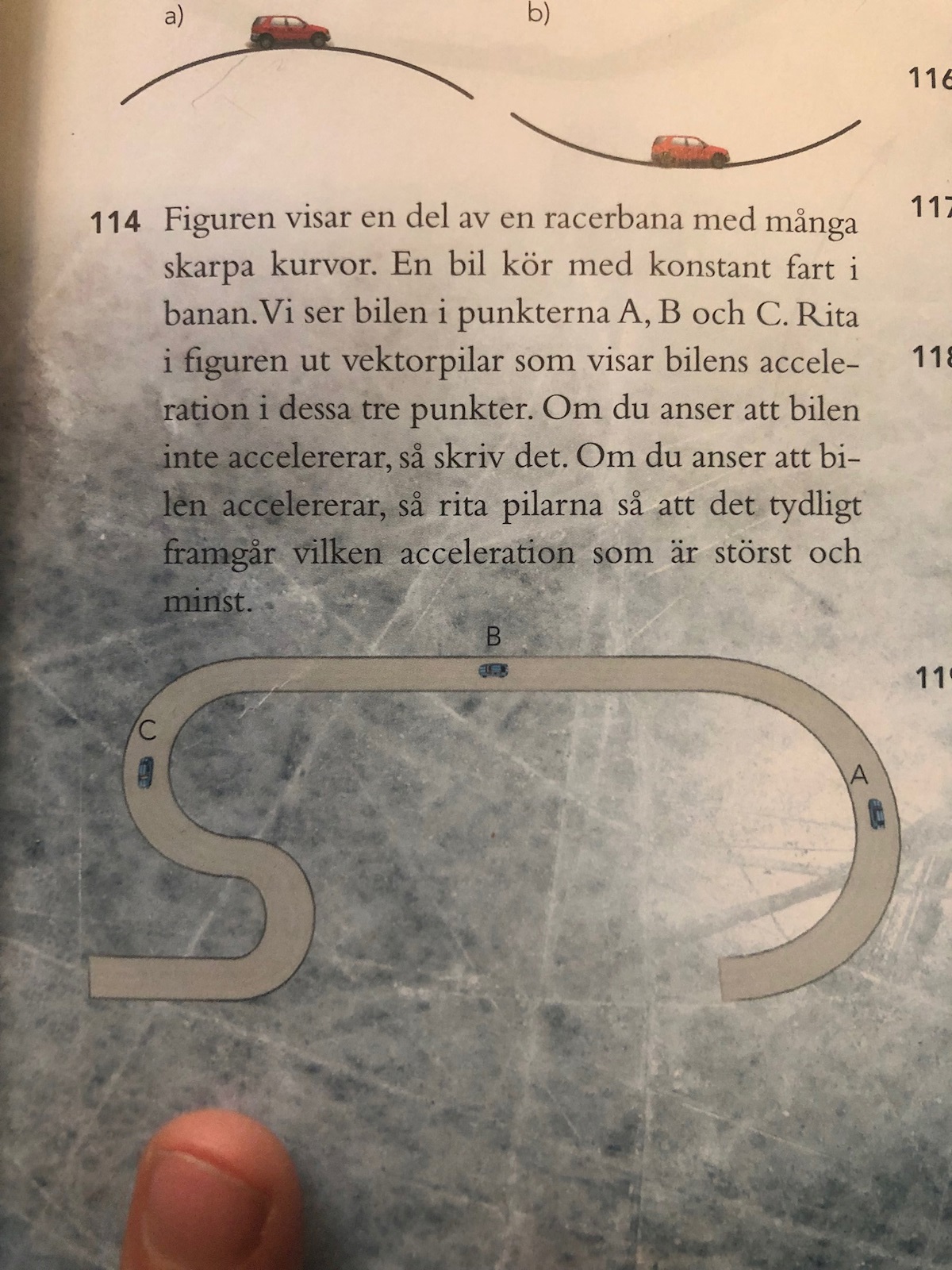 Varför är C större än A? Är det för att en skarpare kurva kräver en större friktionskraft för att hålla den på banan?