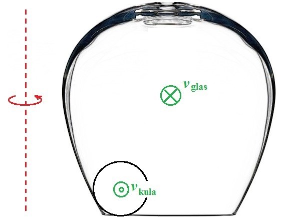 Om vi lägger en kula mot kanten och roterar glaset har vi: