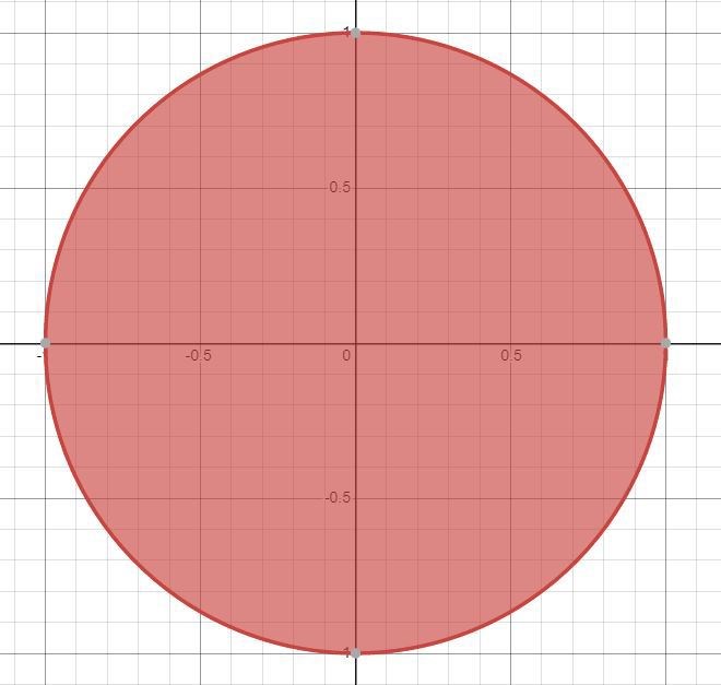 Jag ser nu att det blev fel på min beskrivning av den slutna cirkelskivan. Olikheten ska lyda x2+y2r2x^2+y^2\leq r^2.