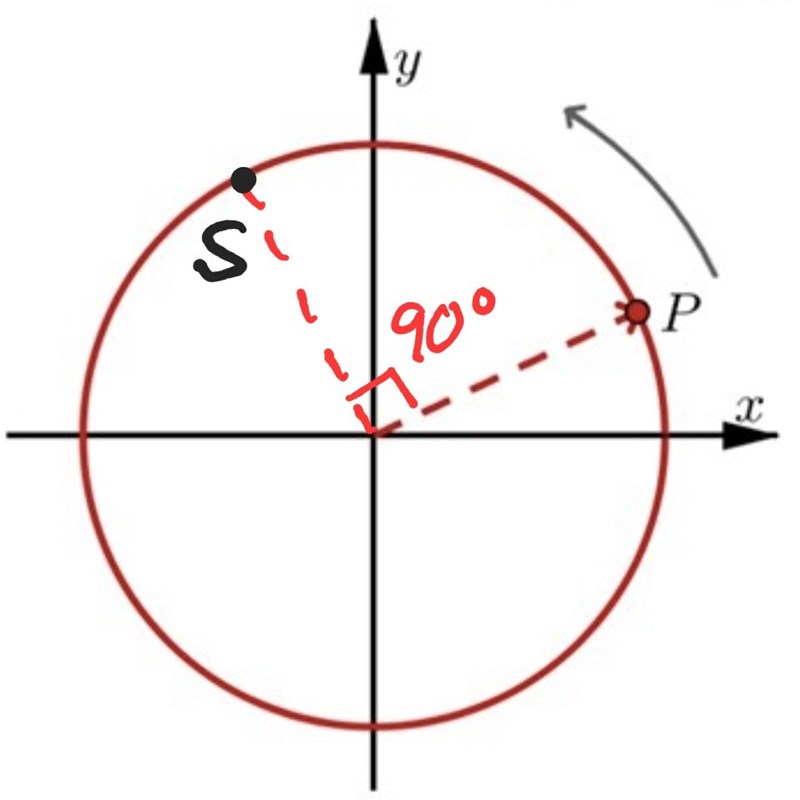 Det stämmer att koordinatwrna för denna punkt S är (-a, b), men det här är inte en vridning 90°, dvs vinkeln v är inte lika med 90°.