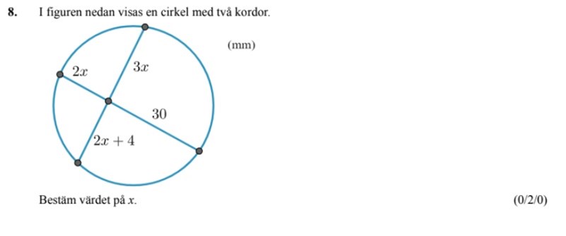 Cirkel med två kordor. Lös ut x.