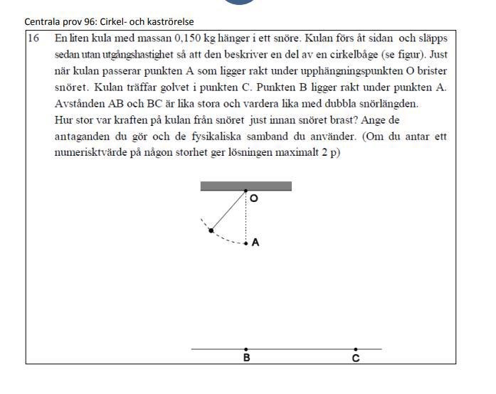 Kan den information hjälpa dig att bestämma kulans hastighet när snöret brister?