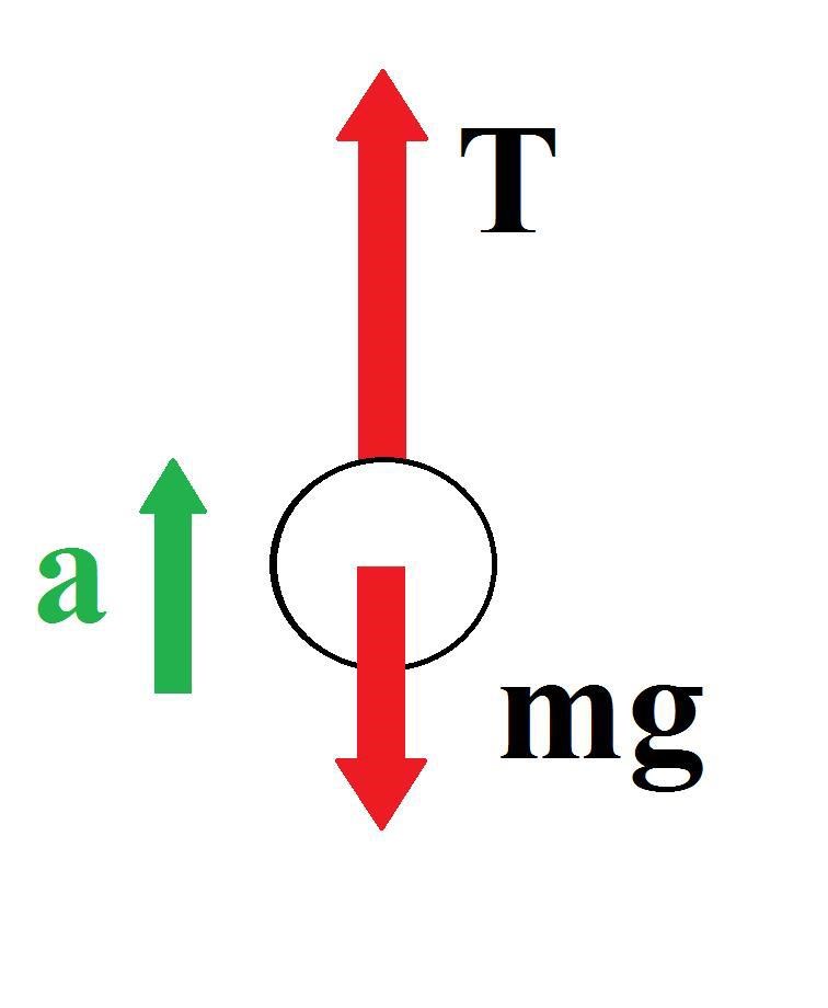 Där T är kraften i snöret, mg är tyngdkraften och a är accelerationen. Kraften i snöret söks så hur bestämmer du den?