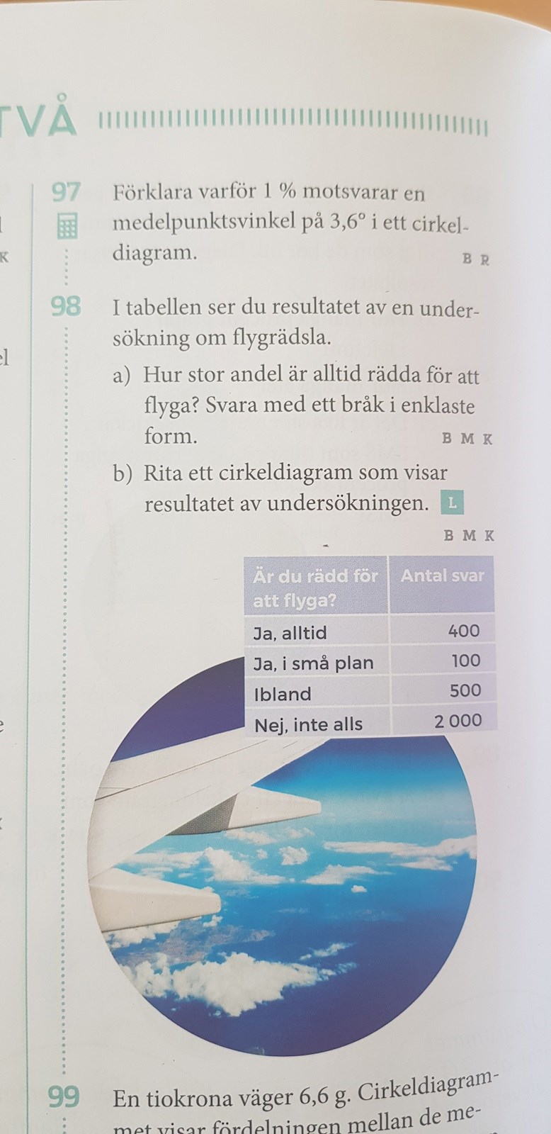Du får räkna ut hur stora andelar i procent varje svar motsvarar. Vad fick du på a?