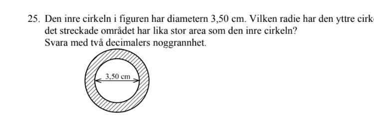 Har försökt räkna ut själv men tänker bara att Radien blir samma om Arean är samma men det verkar inte stämma :/