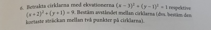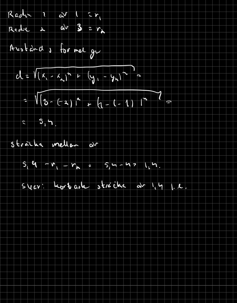Rita cirklarna i ett koordinatsystem.Hur ser det kortaste avståndet mellan dem ut att vara?