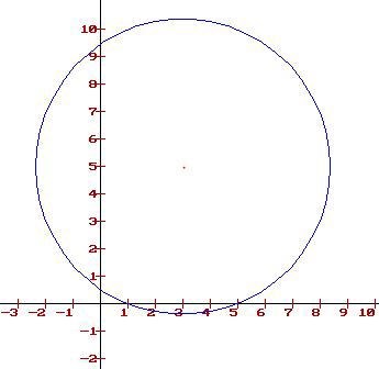 Så ekvationen blir (x-3)^2+ (y-5)^2=29