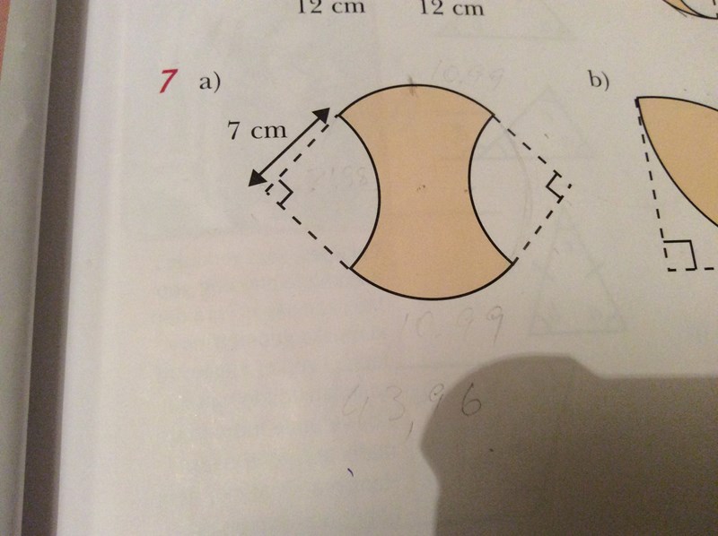 Jag har lyckats räkna ut omkretsen för kvartcirklarna och fått fram att båda sidorna har längden 21.98, men jag förstår inte hur jag ska räkna ut de två andra sidorna.