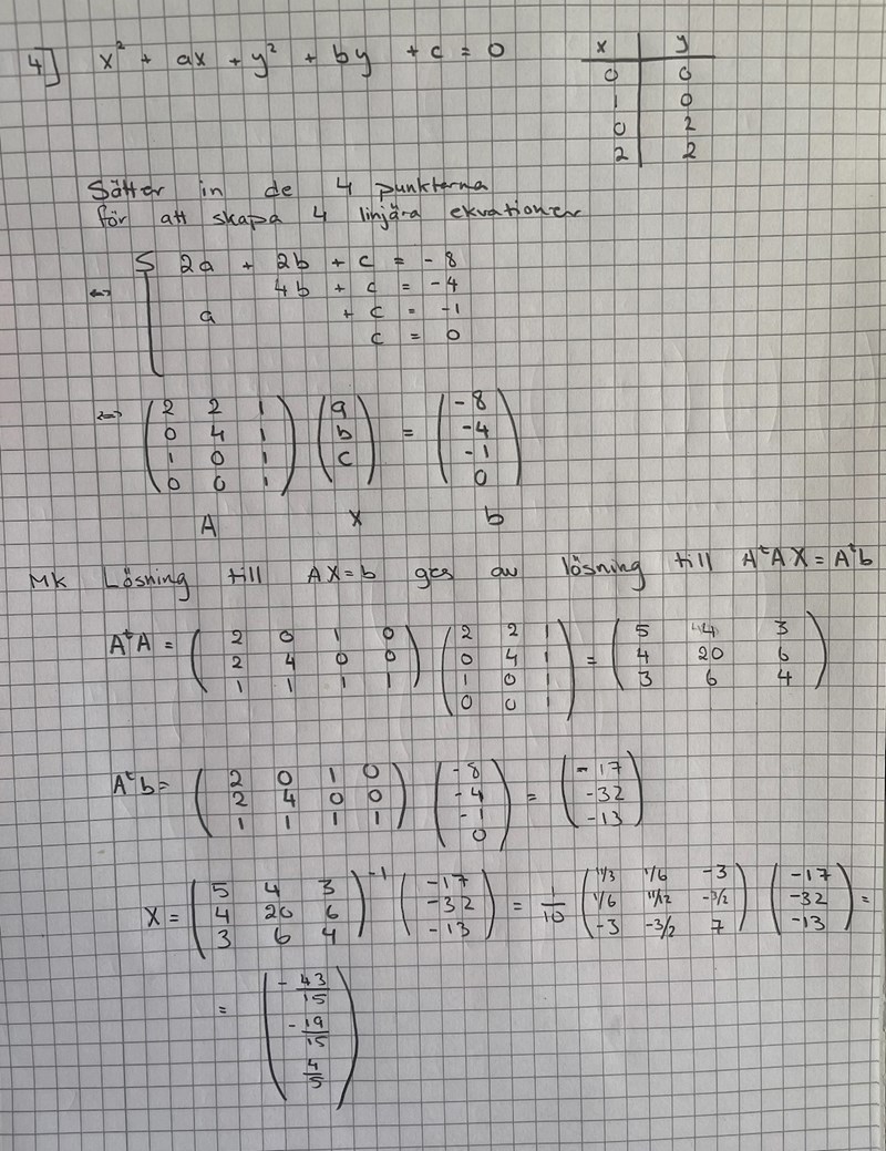 Jag har lyckats lösa första delen av uppgiften med minsta kvadrat metoden, här är min lösning: