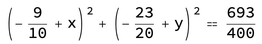 (x - 9/10)^2 + (y - 23/20)^2 = (9/10)^2 + (23/20)^2 - 2/5