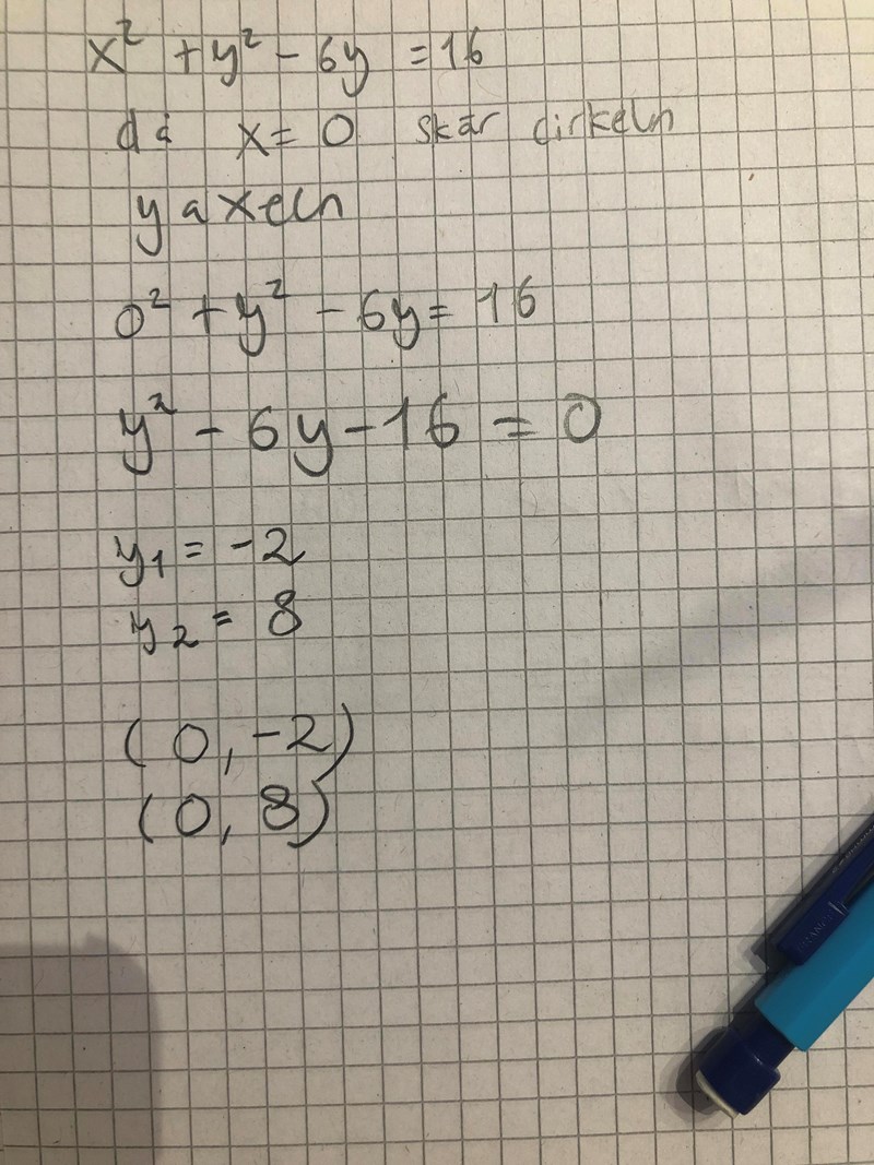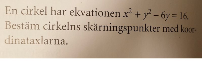 Du har hittat de 2 punkterna där cirkeln skär y-axeln men du saknar de två punkter där den skär x-axeln, annars tänker du helt rätt.