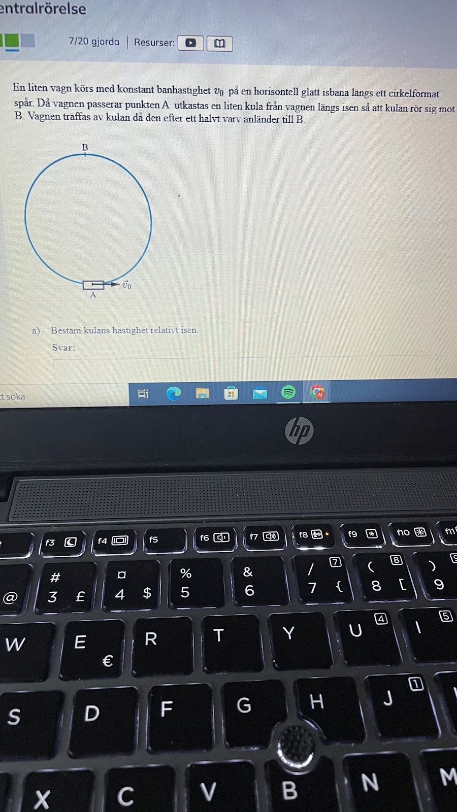 Tiden för kulan att ta sig dit är detsamma som tiden för vagnen, vilket du i sin tur kan bestämma utifrån sträckan som vagnen färdas och hastigheten som vagnen har.