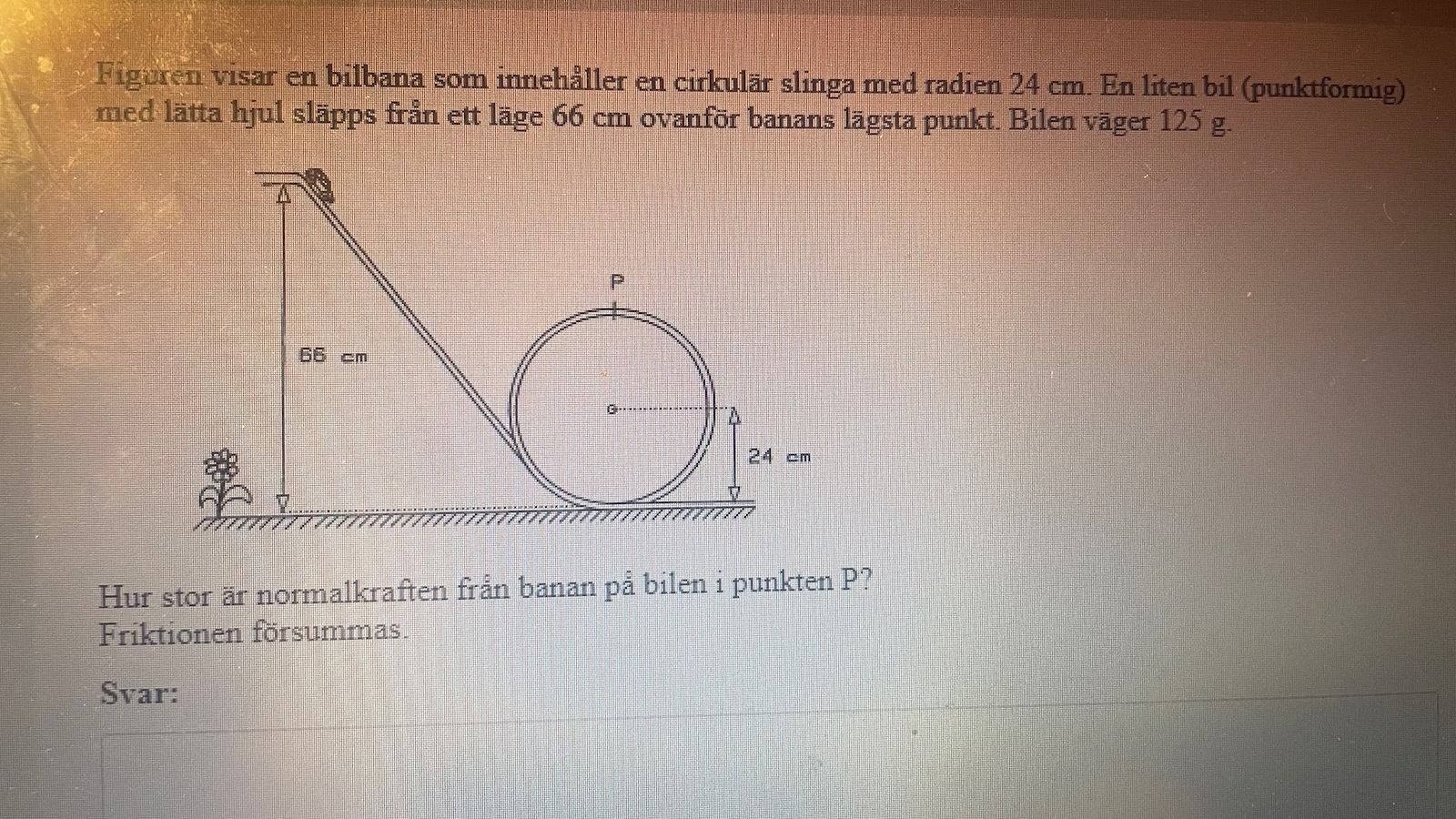 jag vet att jag ska använda mig av energiprincipen för att få fram hastigheten och då får jag den till 1,88m/s. Men när jag räknar ut att Fc=Fn-Fg får jag fel svar. Är inte Fn uppriktdad uppåt och eftersom Fg är negativ så borde det stämma? I facit står det att Fc=Fn+Fg , varför är det så?