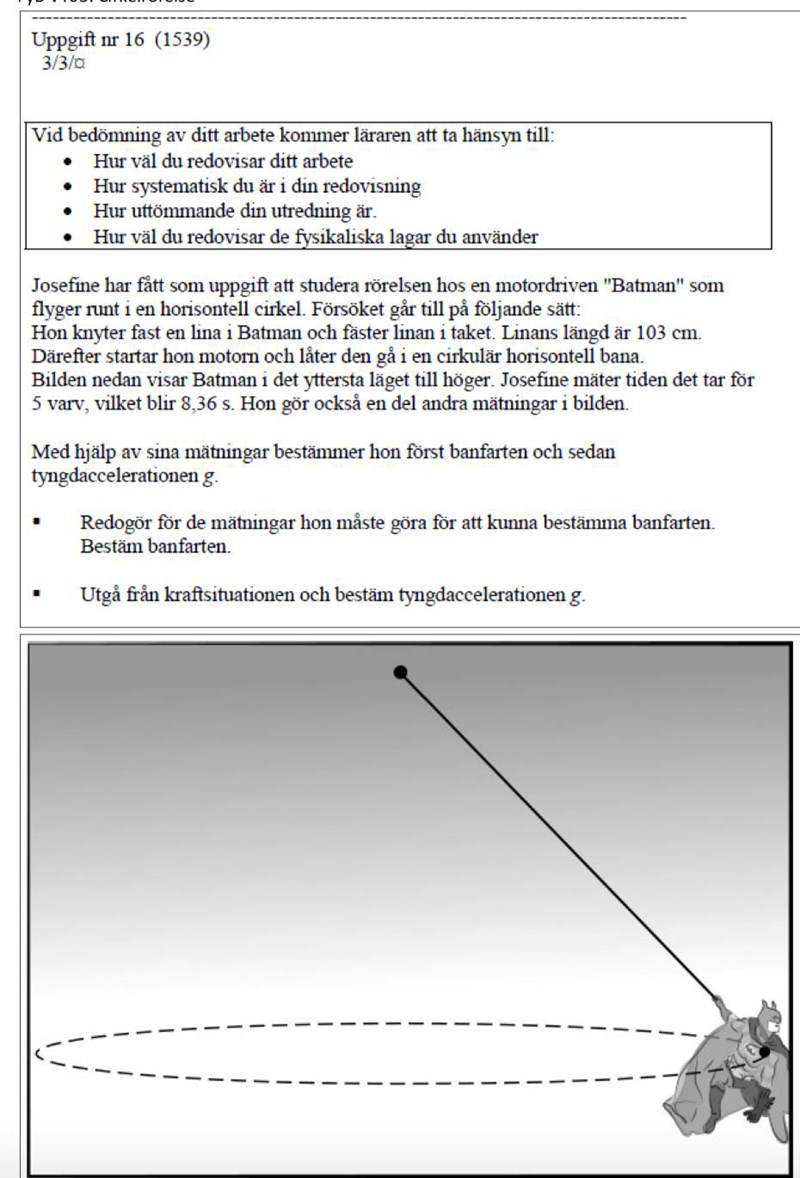 MED vinkeln förstår jag beräkningarna som görs för att få fram banradien, omloppstiden och banfarten och att man slutligen kan sätta upp följande samband: