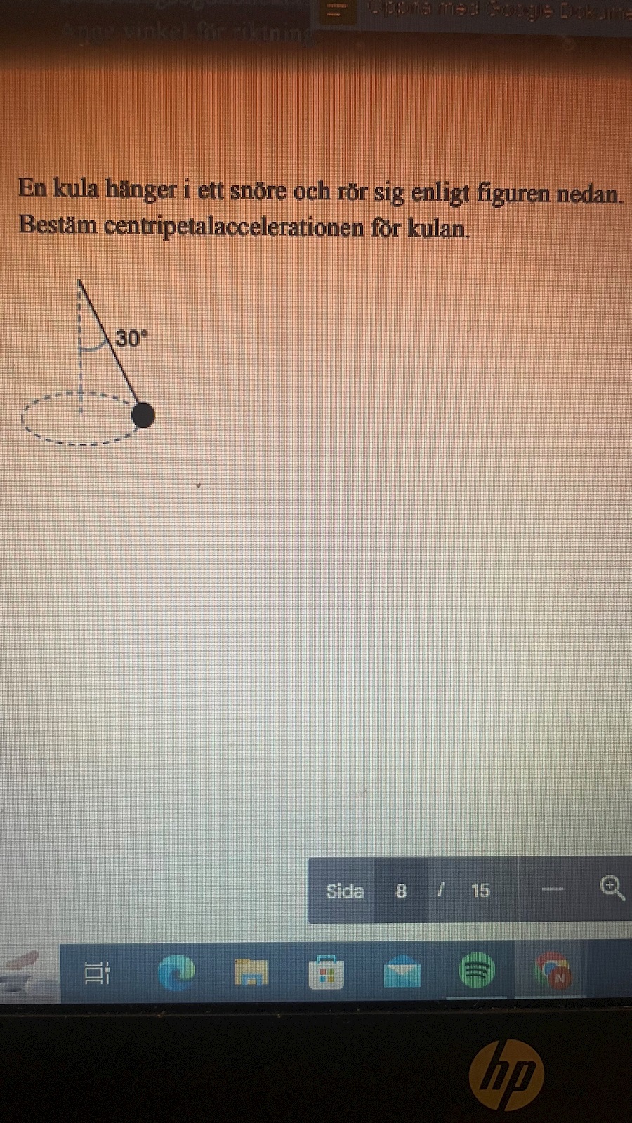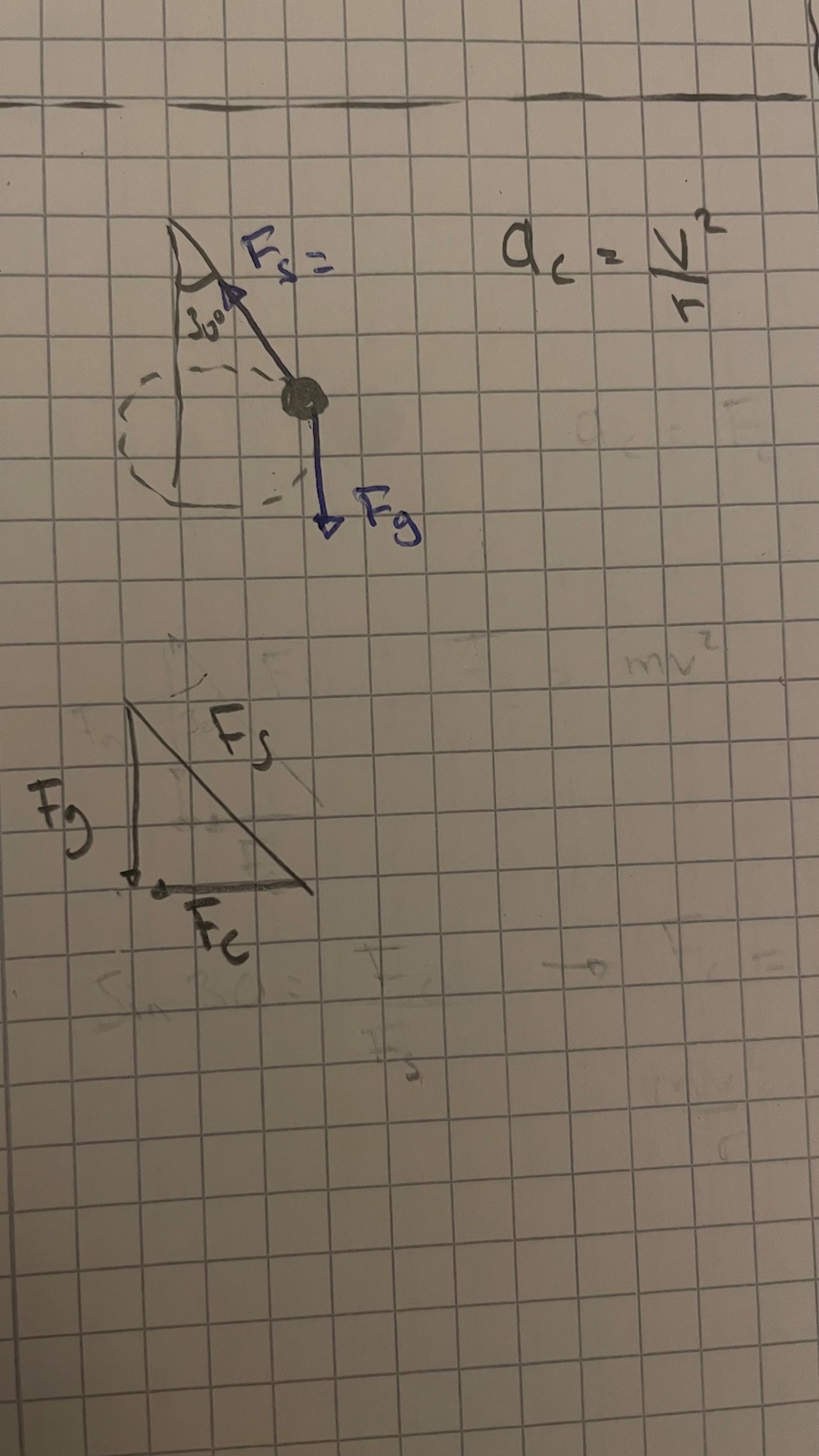Med det tillsammans med att centripetalaccelerationen är v2/r kan du lösa uppgiften.