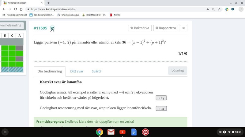 • innanför cirkeln uppfyller sambandet (x-1)2+(y+1)2<36(x-1)^2+(y+1)^2<36.