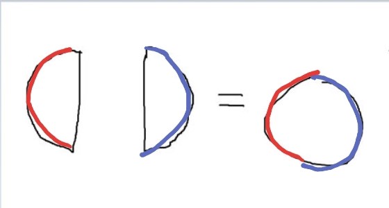 Börja med att rita en figur av två halvcirklar. Den behöver varken vara snygg eller i skala.