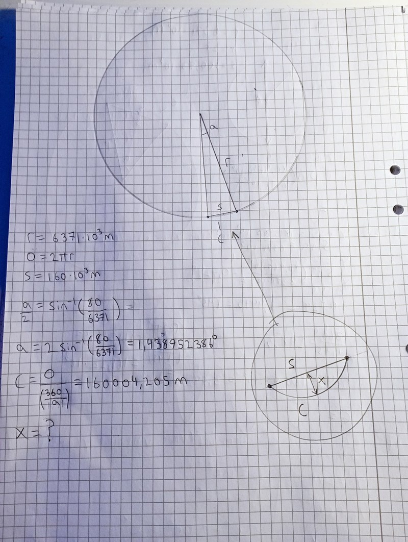 Hej! Vad kan jag använda för metod för att få fram ett värde på x i mina anteckningar här? Bubblan visar en inzoomad version så att man ska se tydligare vad jag försöker beräkna. Alltså avståndet mellan c och s i sin högsta punkt. Jag tänkte först att jag kanske kunda använda en kastkurva men känns fel att göra det.