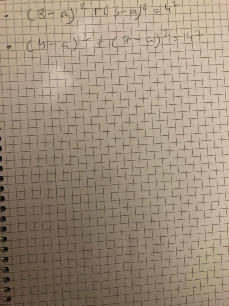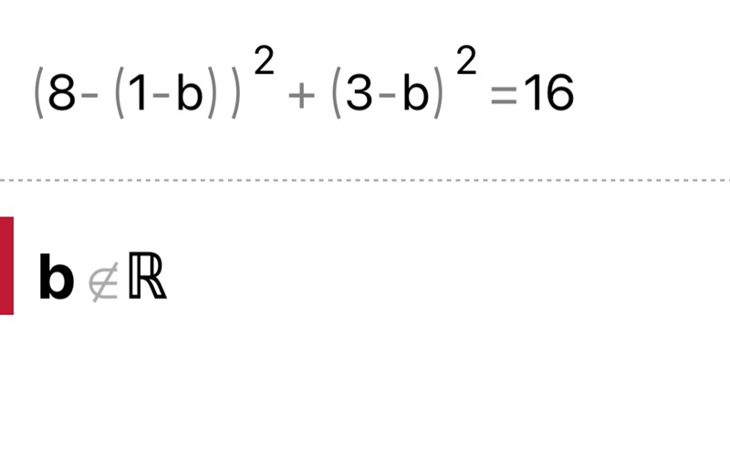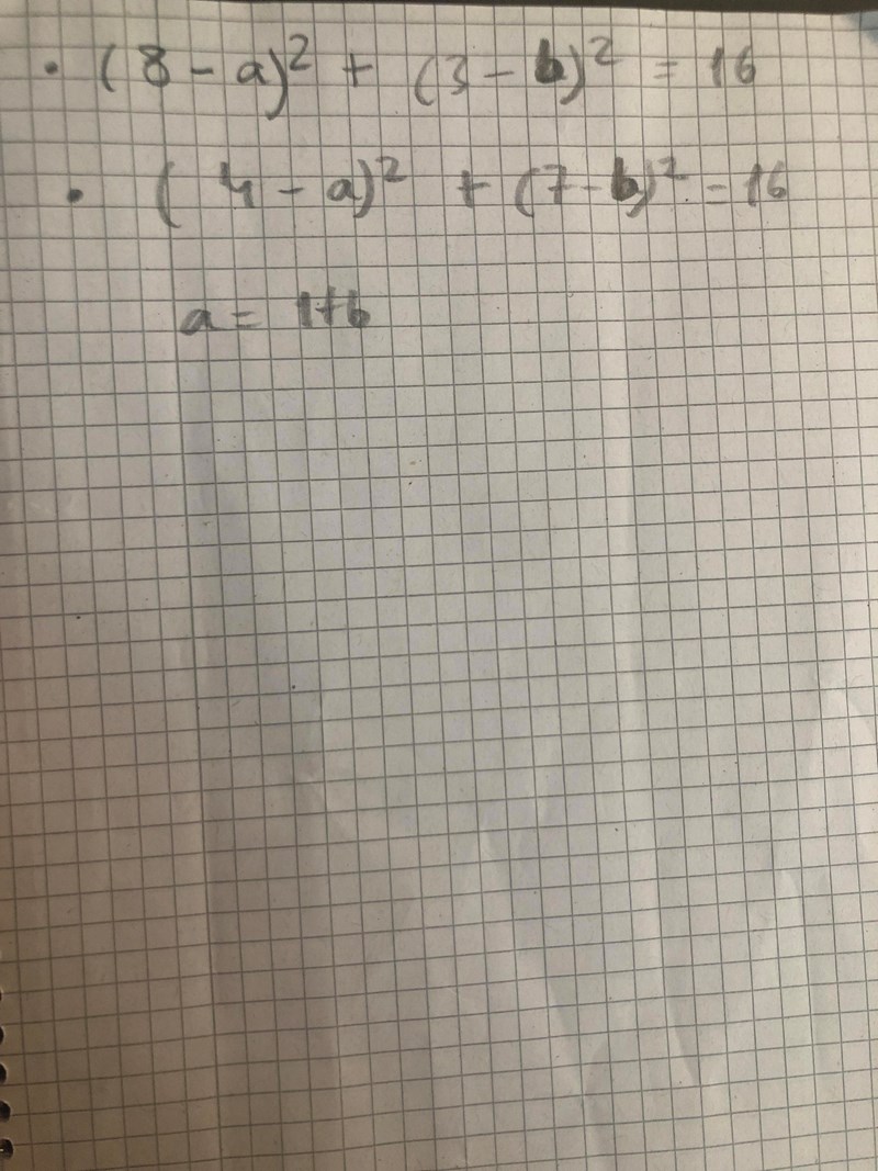 ”texten står bestäm ekvationen fören cirkel med radie 4 som går genom punkterna (8,3) och (4,7)”