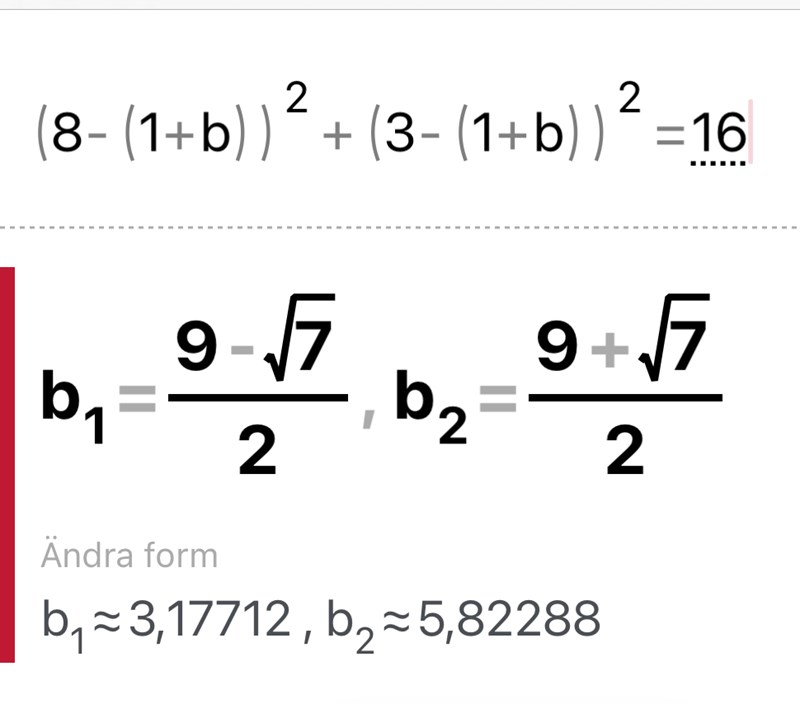 Okej. Då får jag två värden på b. b1=3,17 . b2=5.8