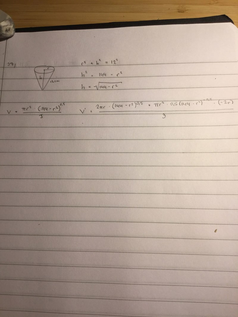 Har jag gjort rätt hittills? Är min derivata korrekt? Sedan tänkte jag sätta derivatan lika med noll för att hitta den radien som ger maximipunkten.