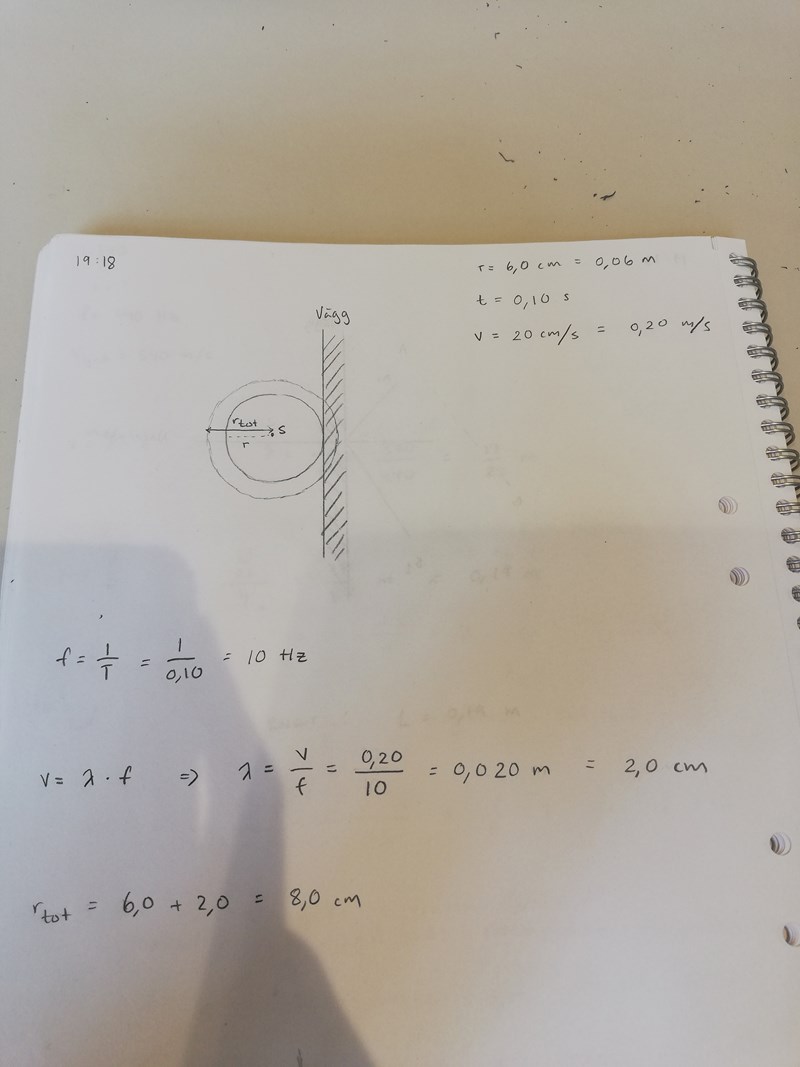 Har räknat ut att den nya totala radien blir 8,0 cm efter 0,10 s. Men förstår inte riktigt facits figur. Hur kan man tänka?