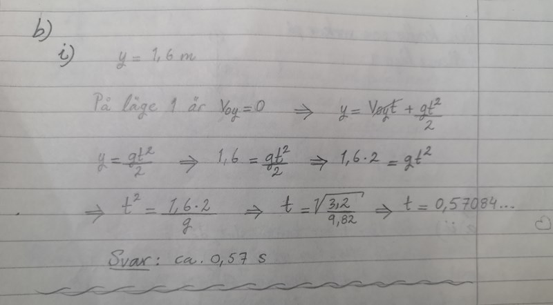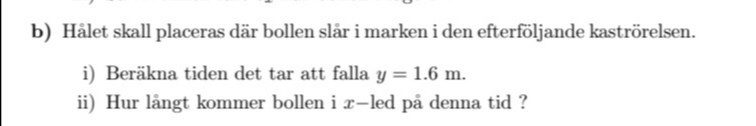 Så jag räknade rätt men det blir tiden för bollen från nedersta läget till det översta läge. Men hur får man tiden för bollen när den faller ner från läge 1 till hålet?