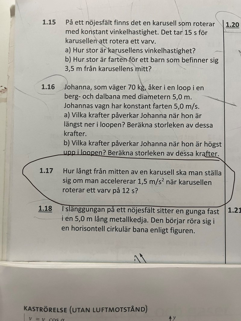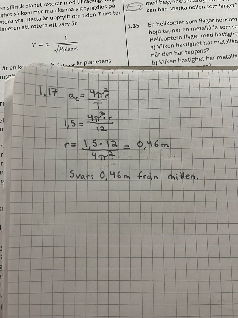 Vad har jag gjort för fel i min uträkning? På fråga 1.17. Svaret ska bli 5,5m.