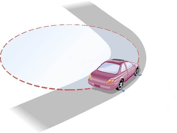 Bilen åker alltså i en kurva så här: