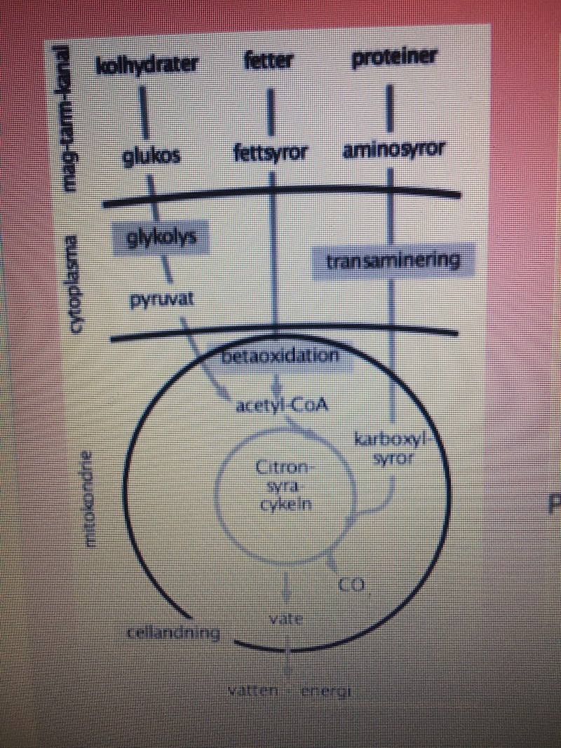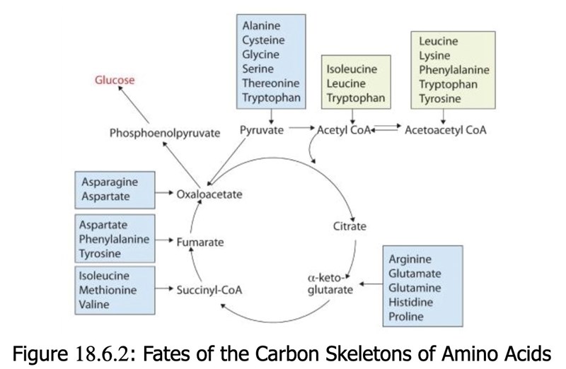 I vilket steg av citronsyracykeln en karboxylsyra kommer in, beror helt på vilken aminosyra det börjar med. Aminosyrorna skiljer sig ju åt, med olika sidokedjor (kallas även R-grupper). Denna bild sammanfattar var transamineringsprodukterna kommer in i citronsyracyklen:
