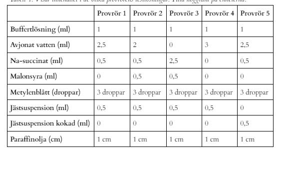 Blir det i slutändan lika mycket vatten eftersom det i Na-succinatet är salt löst i vatten? För totalt blir det lika mycket volym vätska bortsett från paraffin, jästsuspension och metylenblått - det blir 4 ml?