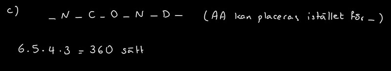 Hej, jag behöver hjälp med C delen av frågan. Jag tror jag har räknat bara adjacent-fallen och den tredje bokstaven ’A’ saknas i svaret. Isåfall hur ska jag ta den med i svaret?